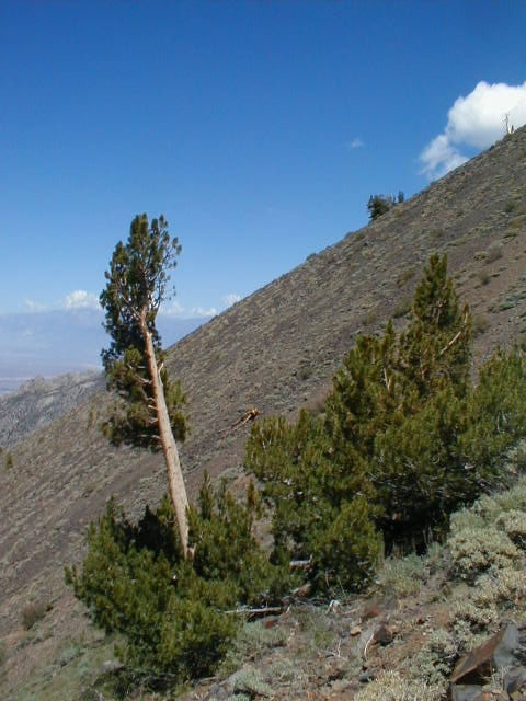 These two photos show some of the vegetation in the East Slope starting zone. While it has not run large enough to extend out into any development in recent times it's obvious that it has avalanched, probably on a regular basis.